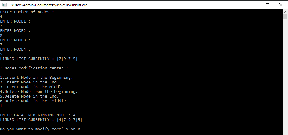 printf("\nENTER DATA IN BEGINNING NODE : ");